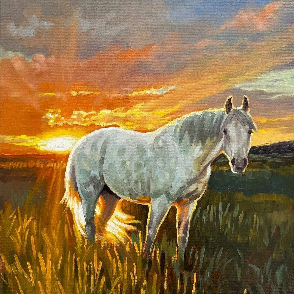 Bring a custom piece of art into your home. Whether it’s a beloved pet portrait or a fantastical western scene you have in your mind’s eye, Sarah can work with you to create your own special piece.