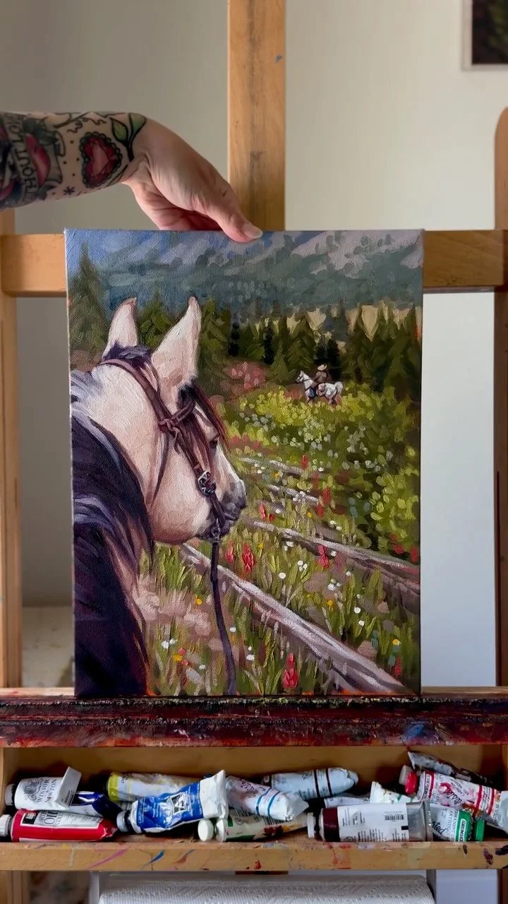 For Sarah Dean, the American West is more than a setting; it’s a lived experience. Raised in rural Colorado, Sarah has spent a lifetime inspired by the beauty of the landscape surrounding her. Her body of work is an evolving exploration of the relationship between the two subjects about which she is most passionate: the horse as the heartbeat behind the West, and the cowgirl as the hero of her own story.